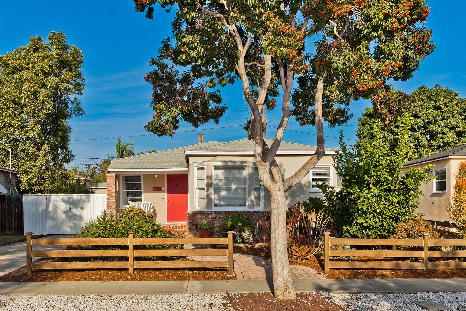 This light and bright Traditional exudes charm while enjoying several updates and offers a large yard -- all just minutes from shops, restaurants, the freeway and more. From the inviting front yard with fence and porch to the wood floors and redone kitchen and master bath, this home is move-in ready. Airy living and dining off updated kitchen. Two spacious bedrooms with shared hall bath. Master suite includes recently done 3/4 bath. Private grass yard, plus multiple patio spaces -- perfect for entertaining or casual daily living. Two-car garage, plus room for up to 3 cars on the gated driveway.